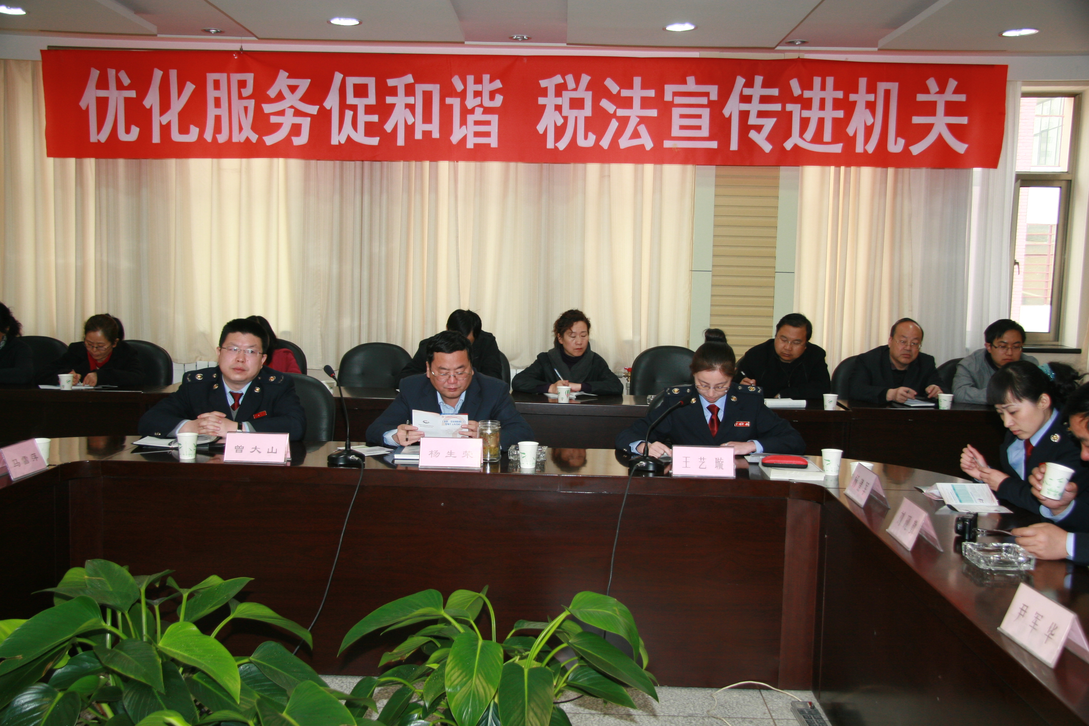 4月7日上午,蘭州市城關(guān)區(qū)地方稅務(wù)一局局長(zhǎng)曾大山一行7人來蘭州分院進(jìn)行了稅法宣講、咨詢,分院副院長(zhǎng)楊生榮參加并致了歡迎詞,蘭州各所(中心)財(cái)務(wù)負(fù)責(zé)人和納稅申報(bào)員等20多人參加了這次活動(dòng)。 每年4月份是我國(guó)的稅法宣傳月,今年的宣傳主題是“納稅服務(wù)”,地稅局的同志以“優(yōu)化服務(wù)促和諧,稅法宣傳進(jìn)機(jī)關(guān)”為主線,對(duì)個(gè)人所得稅、營(yíng)業(yè)稅、房產(chǎn)稅、車船使用稅等稅種進(jìn)行了講解,參會(huì)人員對(duì)納稅申報(bào)中出現(xiàn)的疑問進(jìn)行了咨詢,活動(dòng)現(xiàn)場(chǎng)氣氛熱烈。通過這次活動(dòng),促進(jìn)了各單位財(cái)務(wù)人員與稅務(wù)部門的聯(lián)系和溝通,也使參會(huì)人員對(duì)稅法及相關(guān)規(guī)定更加清楚、明了,為以后做好單位納稅申報(bào)工作奠定了更加堅(jiān)實(shí)的基礎(chǔ)。