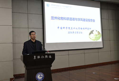 12月12日上午,中國科學(xué)院院士、中國科學(xué)院蘭州化學(xué)物理研究所學(xué)術(shù)委員會副主任、學(xué)位委員會主席劉維民研究員應(yīng)邀為蘭州化物所全所青年職工和研究生作了題為《科學(xué)研究與技術(shù)創(chuàng)新——學(xué)習(xí)、交流與踐行》的專題報(bào)告。報(bào)告會由蘭州化物所副所長、所科研道德與學(xué)風(fēng)建設(shè)委員會副主任師彥平主持。所紀(jì)委書記、副所長、科研道德與學(xué)風(fēng)建設(shè)委員會辦公室主任張長春,研究生導(dǎo)師和全所青年職工、研究生等近300人參加了報(bào)告會。
