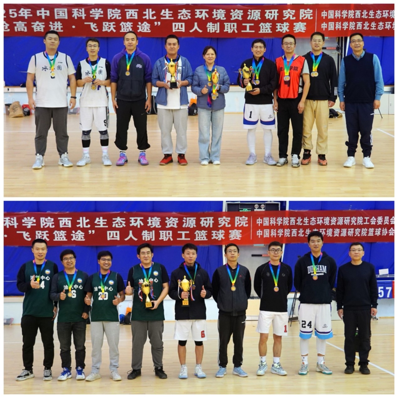本次比賽以團(tuán)體形式分為男子組和女子組進(jìn)行,全體運(yùn)動(dòng)員秉持“安全、友誼、競技”的參賽理念,全身心投入比賽,奉獻(xiàn)了精彩紛呈的籃球盛宴。賽場上,隊(duì)員們默契配合,激烈拼搶,精準(zhǔn)投籃,巧妙助攻,犀利的突破與嚴(yán)密的防守交替上演,多個(gè)精彩進(jìn)球引發(fā)全場歡呼。經(jīng)過緊張激烈的角逐,機(jī)關(guān)女隊(duì)、凍土室一隊(duì)榮獲冠軍,聯(lián)合女隊(duì)、冰凍圈代表隊(duì)榮獲亞軍,油氣中心代表隊(duì)榮獲季軍。邀請代表隊(duì)中,研究生女隊(duì)、蘭州大學(xué)資源環(huán)境代表隊(duì)榮獲冠軍,蘭州大學(xué)生態(tài)學(xué)院代表隊(duì)榮獲亞軍,研究生男隊(duì)榮獲季軍。
