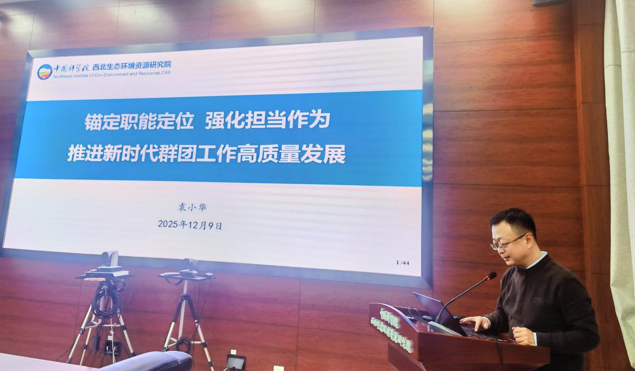 黨委書記張長春參加會議并作專題報告,領(lǐng)學(xué)了習(xí)近平總書記在黨的二十屆四中全會上的重要講話和全會精神,并結(jié)合個人學(xué)習(xí)思考,重點闡述了全會提出的“加快高水平科技自立自強(qiáng),引領(lǐng)發(fā)展新質(zhì)生產(chǎn)力”戰(zhàn)略部署。他強(qiáng)調(diào),群團(tuán)組織負(fù)責(zé)人要立足服務(wù)科技創(chuàng)新中心職責(zé),從搭建創(chuàng)新交流平臺、強(qiáng)化青年人才培育、營造良好科研生態(tài)等關(guān)鍵維度發(fā)力,為搶占寒旱區(qū)生態(tài)環(huán)境資源工程領(lǐng)域科技制高點凝聚共識、匯聚力量。
