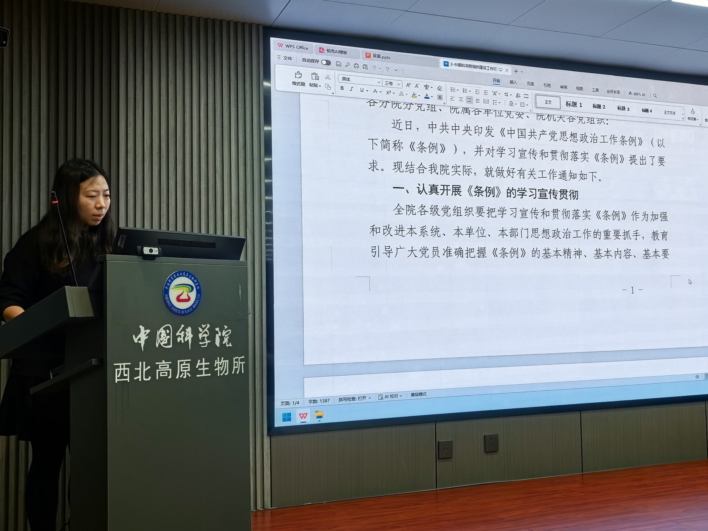 西北高原所資源中心黨支部召開支部大會傳達學習貫徹黨的二十屆四中全會精神