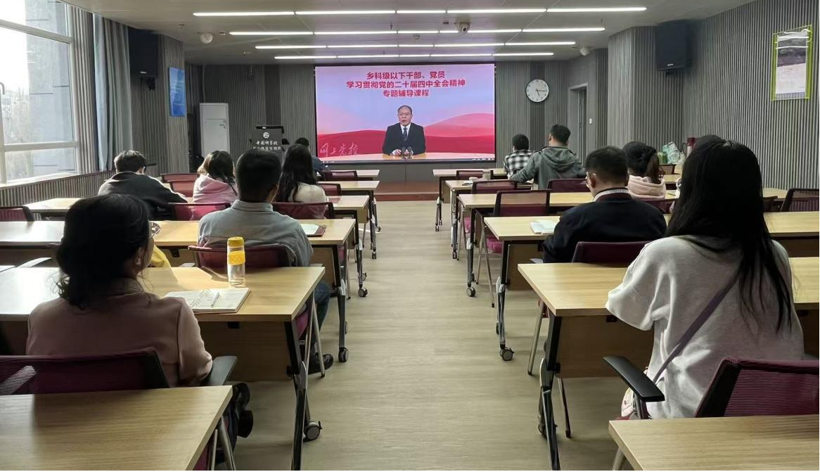 宣傳委員李云組織開展“鄉(xiāng)科級以下干部、黨員學(xué)習(xí)貫徹黨的二十屆四中全會精神專題輔導(dǎo)課程”的集中學(xué)習(xí),本次課程為中央黨校(國家行政學(xué)院)經(jīng)濟(jì)學(xué)教研部教授趙振華主講的《“十五五”時期經(jīng)濟(jì)社會發(fā)展的指導(dǎo)思想、重大原則和根本保證》報告,為立足科研崗位踐行全會精神、推動工作落實奠定了思想基礎(chǔ)。