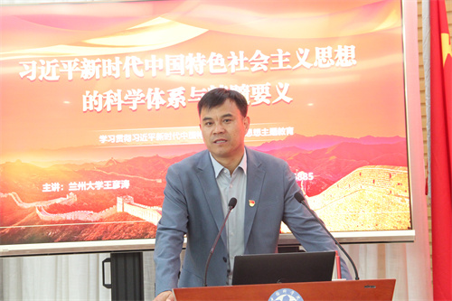 根據(jù)蘭州分院分黨組關(guān)于開展好學習貫徹習近平新時代中國特色社會主義思想主題教育的系列工作要求,會議第二階段進行了主題教育專題團課報告會,邀請?zhí)m州大學馬克思主義學院王彥濤副教授作《習近平新時代中國特色社會主義思想的科學體系與精髓要義》專題報告。報告從“習近平新時代中國特色社會主義思想是如何創(chuàng)立的”“習近平新時代中國特色社會主義思想回答了什么重大時代課題”“習近平新時代中國特色社會主義思想主要包含哪些內(nèi)容”“如何理解習近平新時代中國特色社會主義思想的歷史地位”“如何學好用好習近平新時代中國特色社會主義思想”5個方面系統(tǒng)講解了習近平新時代中國特色社會主義思想的思想內(nèi)涵與重大意義,報告內(nèi)容詳實、生動全面,為與會團員青年進一步接受主題教育起到了良好的指導(dǎo)作用。