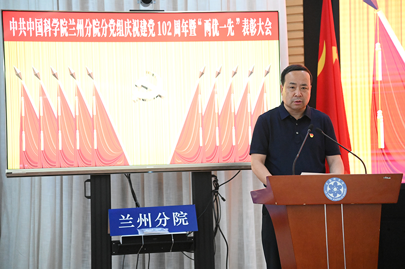 為慶祝中國共產(chǎn)黨成立102周年,深入開展學(xué)習(xí)貫徹習(xí)近平新時(shí)代中國特色社會主義思想主題教育,中共中國科學(xué)院蘭州分院分黨組、中共中國科學(xué)院蘭州分院系統(tǒng)單位委員會于6月26日召開慶祝中國共產(chǎn)黨成立102周年暨“兩優(yōu)一先”表彰大會。分黨組、系統(tǒng)單位黨委領(lǐng)導(dǎo)班子成員,蘭州、西寧地區(qū)院屬各單位黨委領(lǐng)導(dǎo)同志、黨辦主任,分院機(jī)關(guān)高級業(yè)務(wù)主管四級職員、各部門負(fù)責(zé)人、各黨支部(總支)書記以及受表彰的“兩優(yōu)一先”人員參加會議。會議由蘭州分院分黨組副書記、系統(tǒng)單位黨委副書記陳改學(xué)主持。
