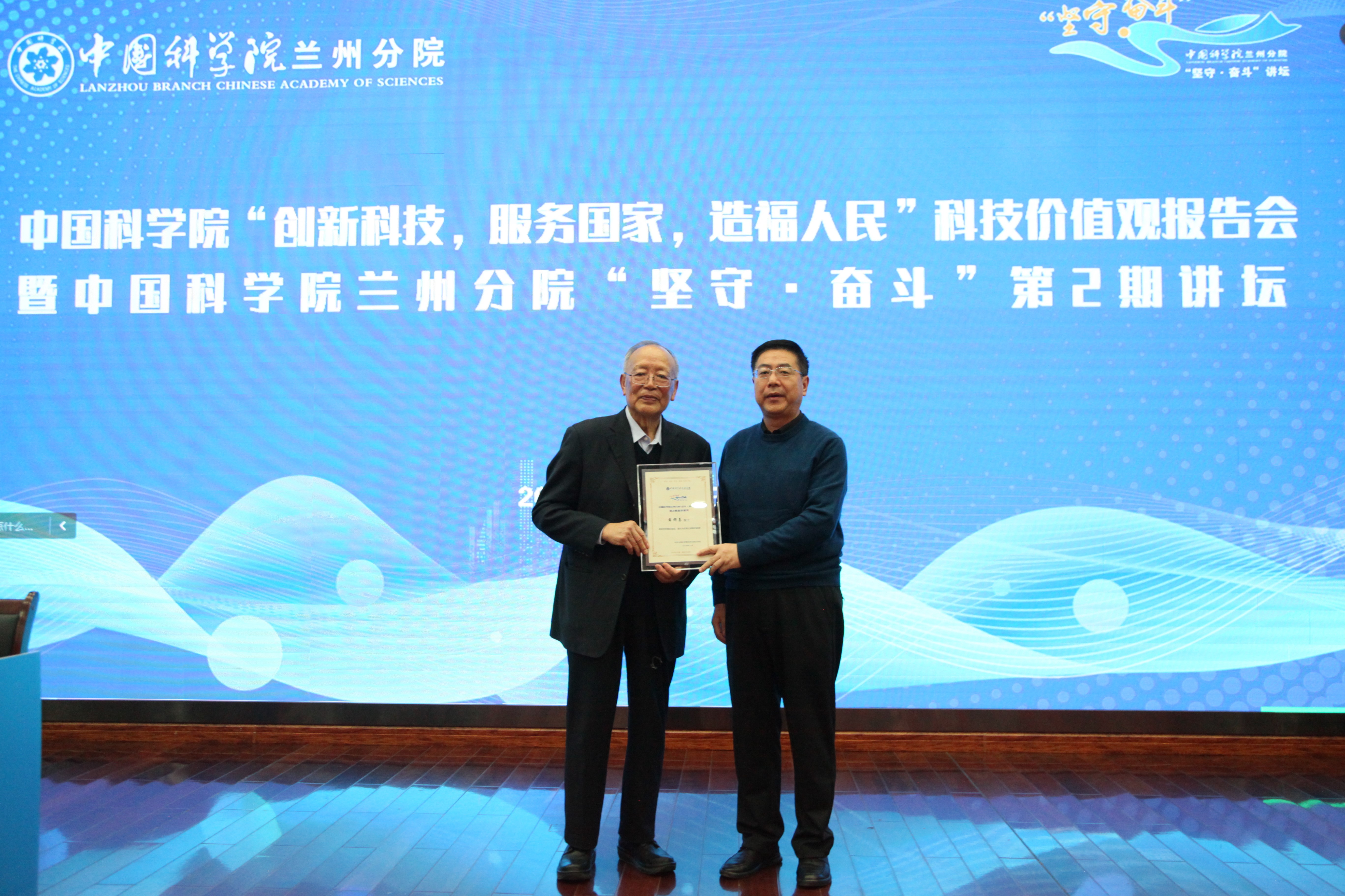 11月29日,中國科學院“創(chuàng)新科技、服務(wù)國家、造福人民”科技價值觀報告會暨中國科學院蘭州分院“堅守·奮斗”第2期講壇在蘭州化學物理研究所舉行,報告會邀請材料化學和潤滑材料專家、中國工程院院士薛群基作《讓我們一起學習科學家精神》專題報告。