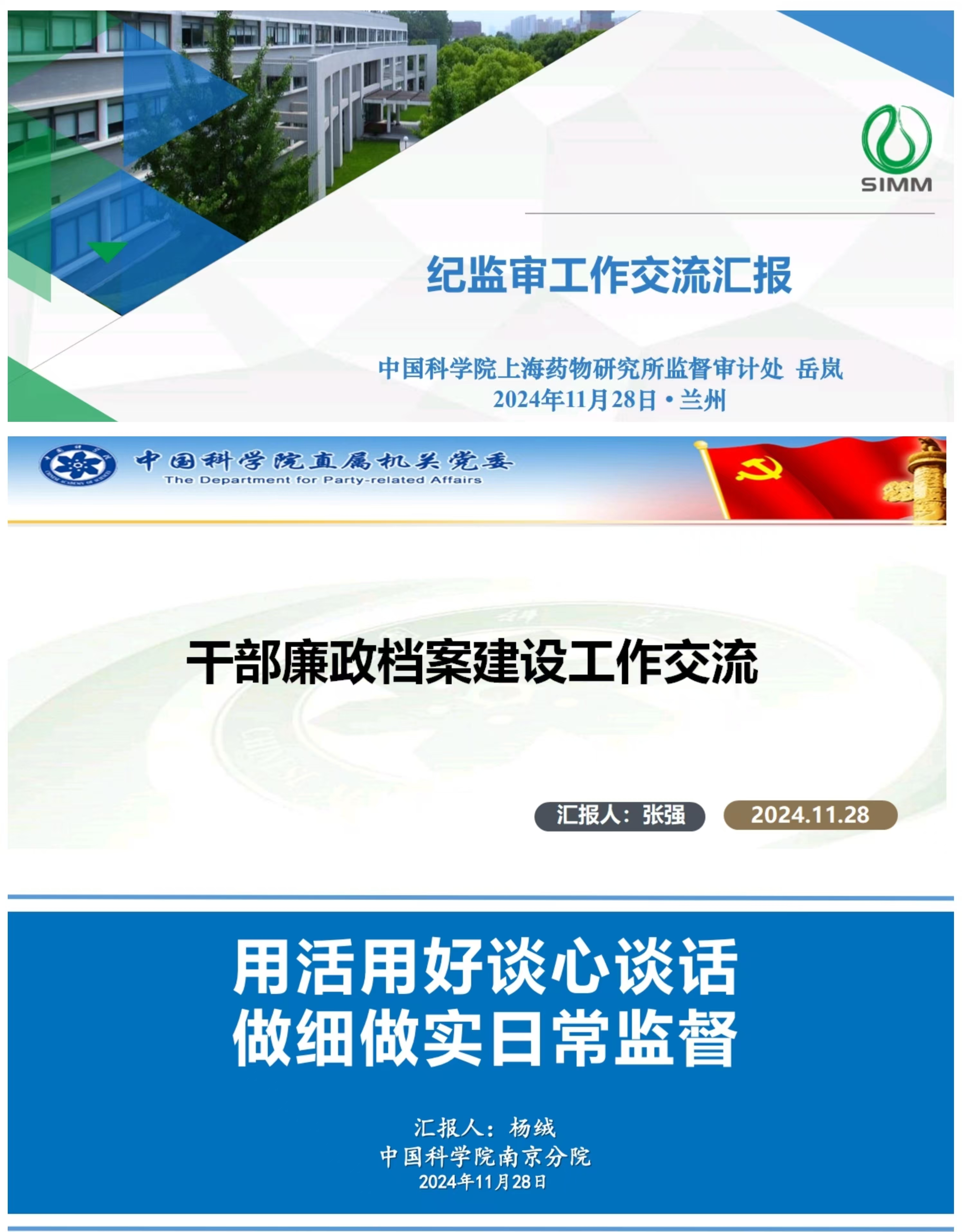 為進(jìn)一步加強(qiáng)黨員監(jiān)督管理,落實(shí)落細(xì)廉政風(fēng)險(xiǎn)防控,中國科學(xué)院直屬機(jī)關(guān)紀(jì)委紀(jì)檢工作部張強(qiáng)重點(diǎn)講述了“干部廉政檔案建設(shè)”工作經(jīng)驗(yàn);南京分院紀(jì)檢辦主任楊絨作題為《用活用好談心談話 做細(xì)做實(shí)日常監(jiān)督》專題報(bào)告;上海藥物所紀(jì)委副書記、監(jiān)審處處長(zhǎng)岳嵐就研究所紀(jì)監(jiān)審工作實(shí)務(wù)作分享交流。此外,參訓(xùn)學(xué)員還集中觀看了典型違紀(jì)違法行為警示教育視頻資料。