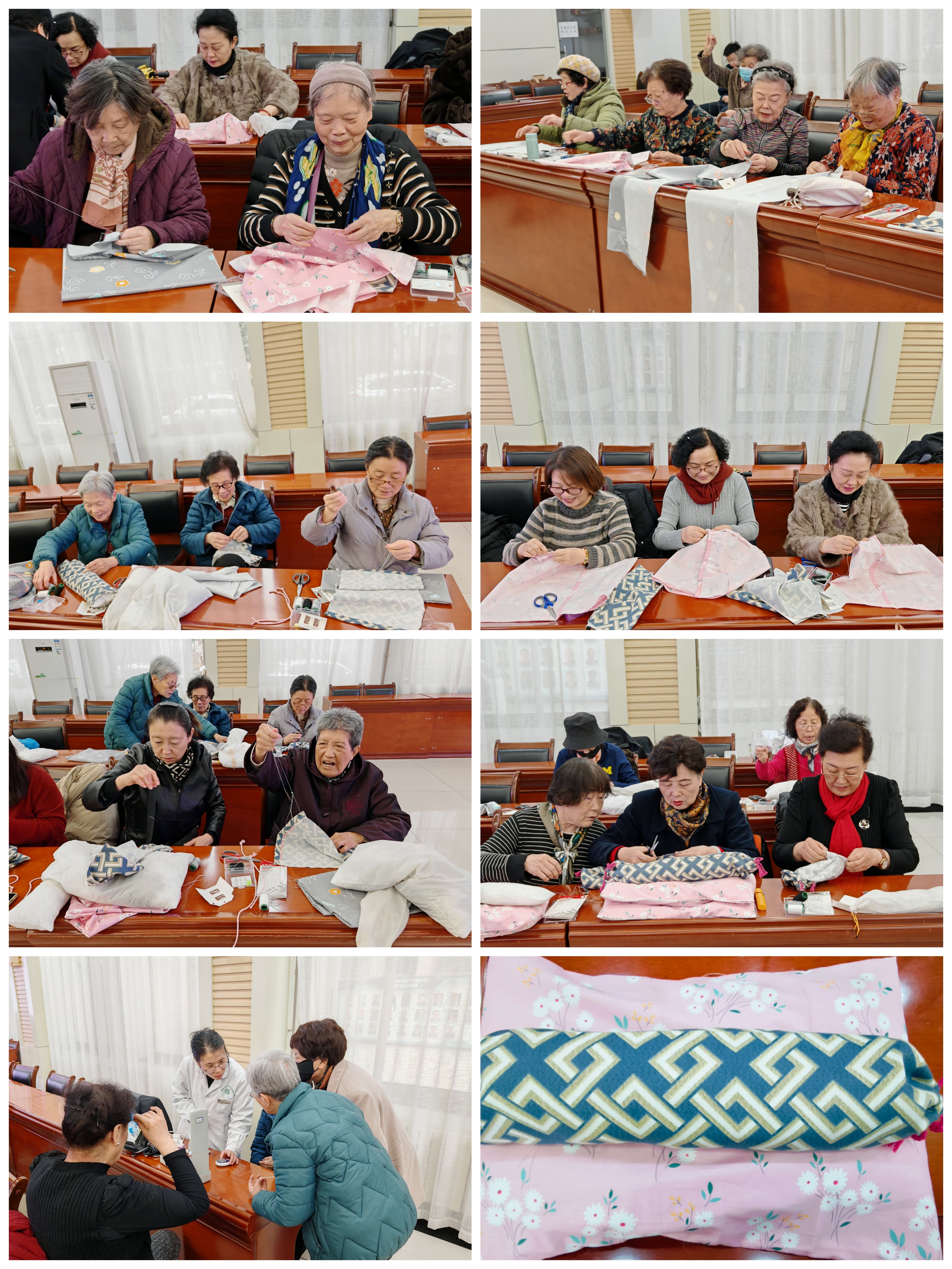 活動中,授課老師科普了藥枕“內(nèi)病外治”的中醫(yī)智慧,詳細介紹當歸、艾草、合歡花等十余味中藥材的安神助眠功效,現(xiàn)場藥香裊裊,老同志們興致盎然。在制作中藥頸椎枕與頭枕環(huán)節(jié),老同志們化身“巧手匠人”,從選布折疊到一針一線縫合邊緣,預留返口;隨后將混合好的中藥原料填入棉麻枕芯,飛針走線間,藥香彌漫,老同志們或交流縫紉技巧,或回憶往日歲月,一針一線既縫制出貼合頸椎曲線的養(yǎng)生枕,更織就了傳統(tǒng)技藝與溫情關懷交融的匠心之作。