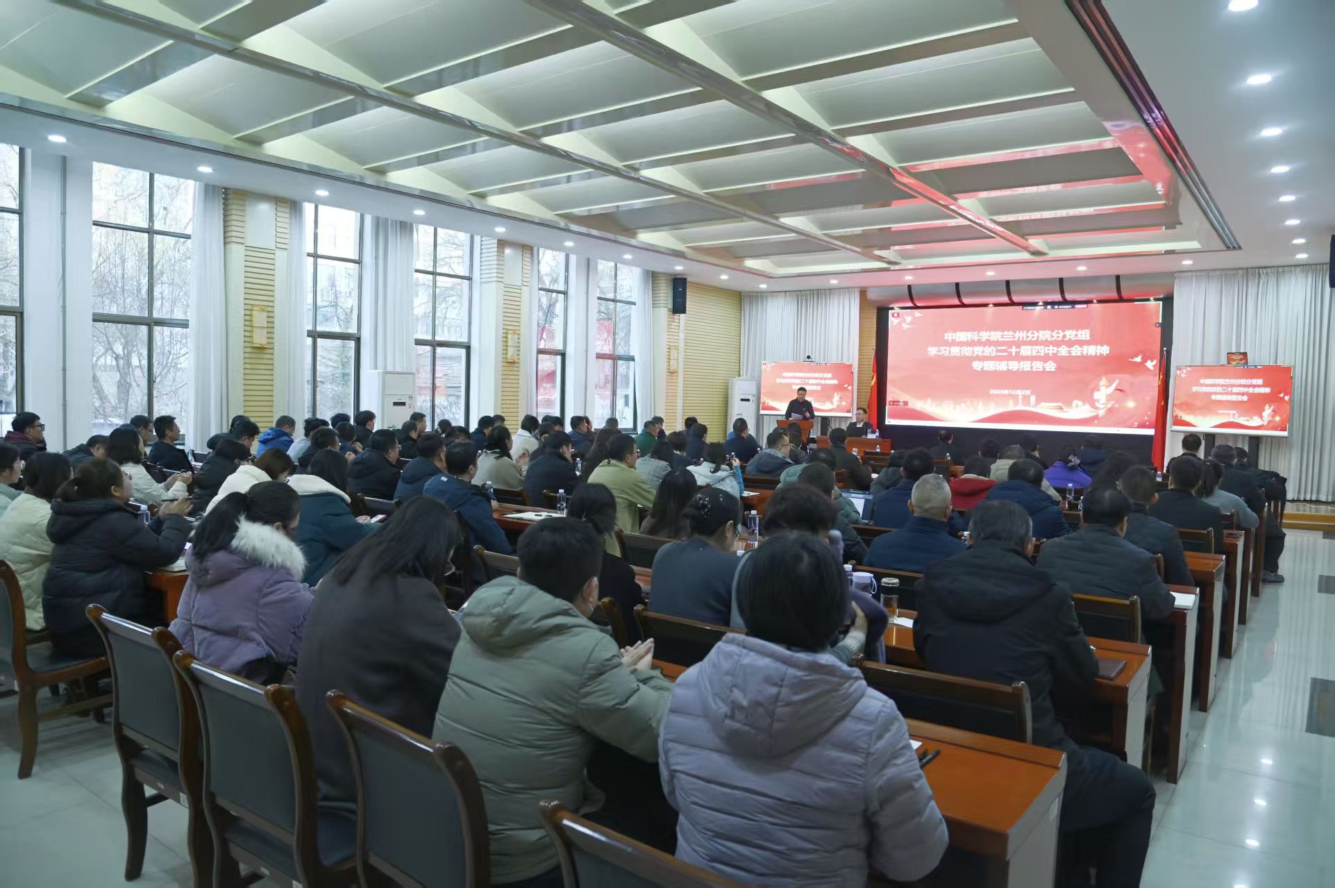 12月2日,中共中國(guó)科學(xué)院蘭州分院分黨組舉辦學(xué)習(xí)貫徹黨的二十屆四中全會(huì)精神專(zhuān)題輔導(dǎo)報(bào)告會(huì)。會(huì)議由蘭州分院分黨組成員、紀(jì)檢組組長(zhǎng)吳建剛主持。