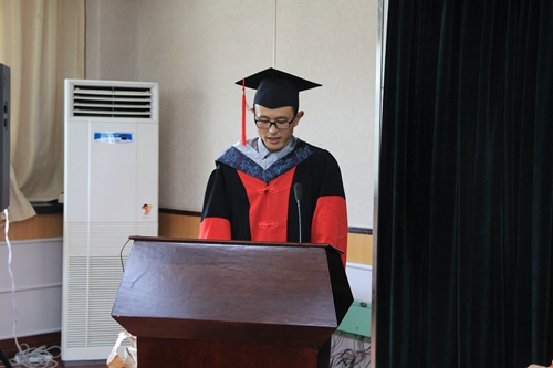 優(yōu)秀畢業(yè)生康建軍博士代表畢業(yè)生發(fā)言。他首先向西北研究院、向各位悉心培育學生的導師們表示感謝。并寄語尚未畢業(yè)的師弟師妹們,鼓勵他們“堅持一下,再堅持一下,也許成功就在不遠的前方”,最后表示將銘記母校,不管走到哪里,不管在什么樣的工作崗位上都會承擔國家、民族和社會賦予的責任。