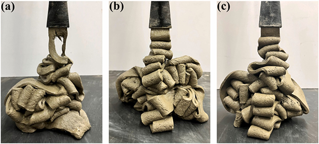圖2.?添加1%纖維和不同質(zhì)量納米凹凸棒石(a-0%、b-0.25%、c-0.5%)時(shí)3D打印性能