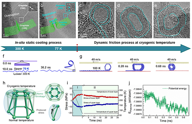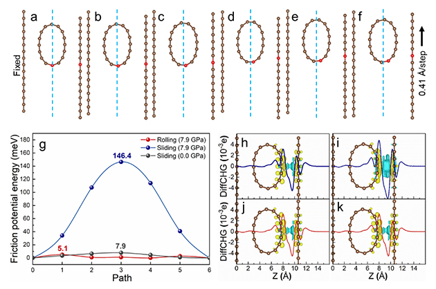 近期,中國科學(xué)院蘭州化學(xué)物理研究所蘭州潤滑材料與技術(shù)創(chuàng)新中心磨損與表面工程課題組和潤滑材料重點(diǎn)實(shí)驗(yàn)室計(jì)算摩擦學(xué)課題組合作在超低溫下石墨摩擦界面演變與分子滾動(dòng)潤滑機(jī)理研究方面取得重要進(jìn)展。研究團(tuán)隊(duì)發(fā)現(xiàn)了超低溫下石墨納米片自卷曲與分子滾動(dòng)潤滑的現(xiàn)象,揭示了分子滾動(dòng)潤滑的界面電子作用機(jī)理,為從分子尺度認(rèn)識(shí)與控制摩擦現(xiàn)象提供了新的認(rèn)知和設(shè)計(jì)原理。