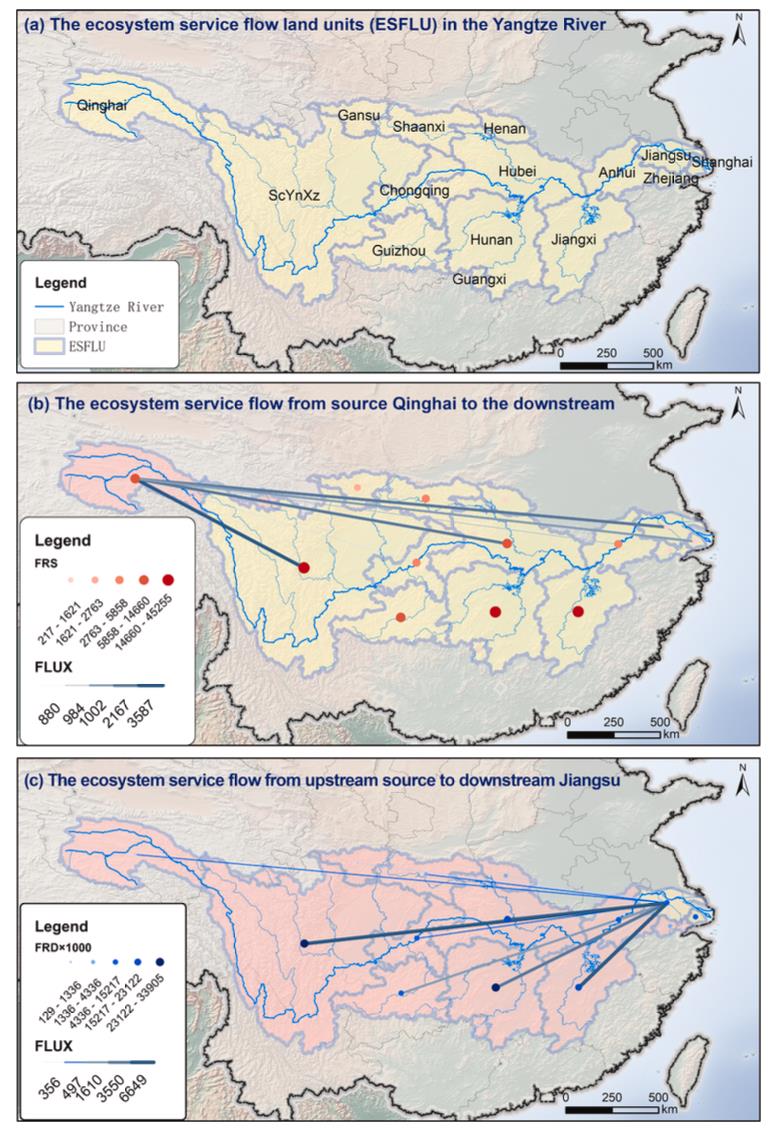 FRESF工具箱3號(hào)模塊的示例輸出,定量評(píng)估了長(zhǎng)江流域2020年洪水調(diào)蓄生態(tài)系統(tǒng)服務(wù)流