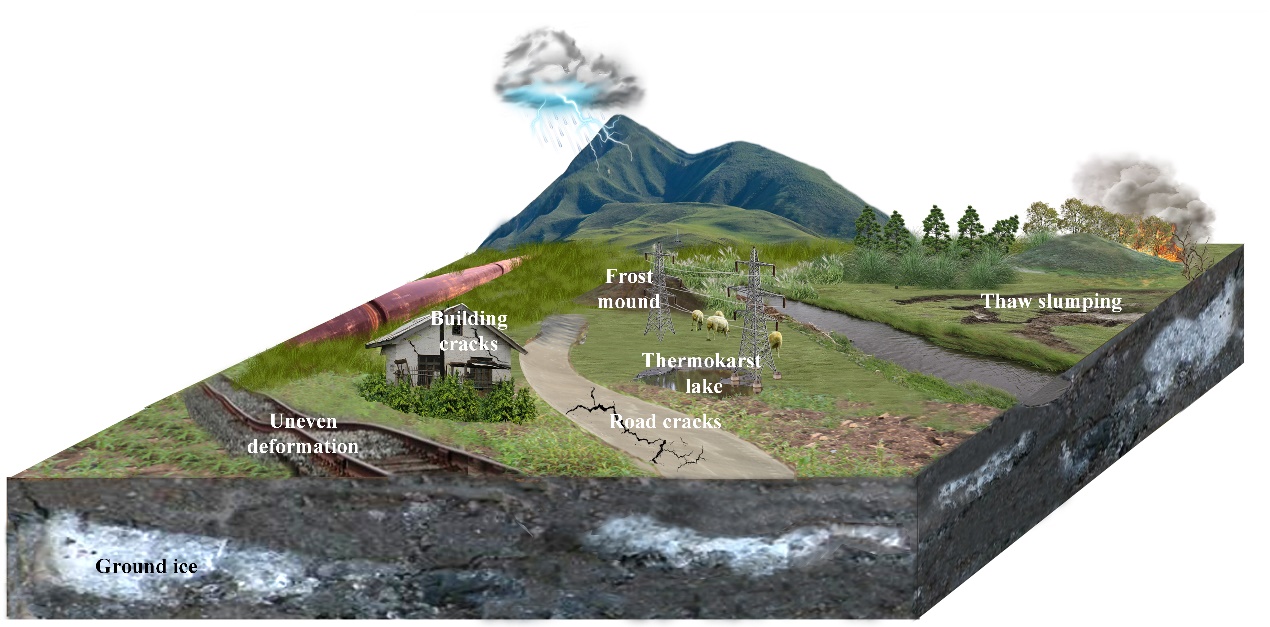 研究結(jié)果顯示,在氣候變暖和環(huán)境變化的影響下,區(qū)域凍土表現(xiàn)出區(qū)域的退化和局部的進(jìn)化。多年凍土分布、地下冰、土體水熱狀態(tài)等的時(shí)空變化影響區(qū)域生態(tài)系統(tǒng)分布和演替、能水和碳循環(huán)以及寒區(qū)工程安全。凍土變化過(guò)程中,對(duì)寒區(qū)環(huán)境致災(zāi)和致利效應(yīng)隨凍土退化過(guò)程相互轉(zhuǎn)化。凍土的退化是寒區(qū)環(huán)境變化的重要驅(qū)動(dòng)因素,定量地探索凍土變化對(duì)區(qū)域水-碳資源和生態(tài)環(huán)境的影響及其效應(yīng)轉(zhuǎn)變過(guò)程,利用致利效應(yīng),預(yù)防致災(zāi)效應(yīng),科學(xué)應(yīng)對(duì)未來(lái)氣候變暖帶來(lái)的挑戰(zhàn)。
