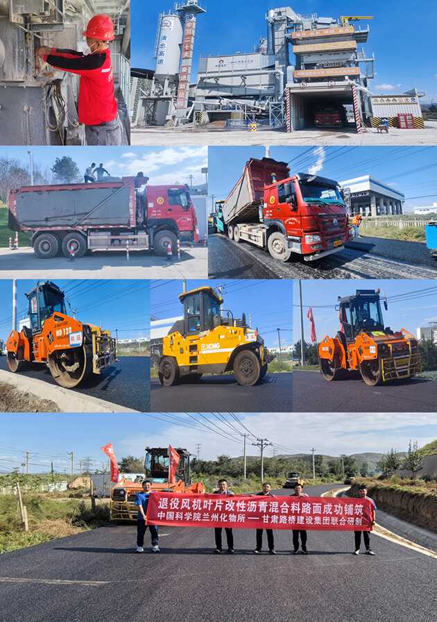 蘭州化物所完成退役風機葉片改性瀝青混合料示范應(yīng)用路面鋪筑