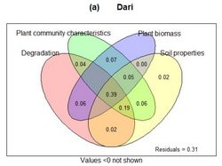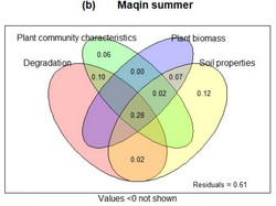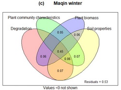 達(dá)日冬季草場(chǎng)(a)、瑪沁夏季草場(chǎng)(b)及瑪沁冬季草場(chǎng)(c)高寒草甸土壤微生物碳氮磷含量及其化學(xué)計(jì)量比的方差分解分析