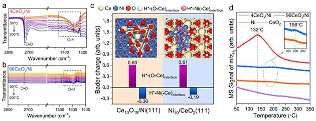 圖4. CeOx/Ni催化劑促進(jìn)Hδ?物種的形成及穩(wěn)定