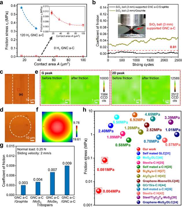 近日,研究人員針對固體表面濕度敏感、超潤滑跨尺度易失效等基礎科學問題開展系統(tǒng)研究?;谖墨I調研,發(fā)現(xiàn)固體表面濕度敏感源于磨損后暴露的新表面,導致與水分子作用強烈的化學斷鍵形成。研究人員提出了運動界面“(近似)無磨損無化學反應”思路,通過磁控濺射物理氣相沉積技術,制備石墨烯覆蓋表面的納米結構碳薄膜,構建碳薄膜/微觀石墨島體系,實現(xiàn)了穩(wěn)健、濕度不敏感超潤滑(即相對濕度2-80%下均實現(xiàn)超滑)。鑒于界面近似無磨損特性,該體系表現(xiàn)出結構性超潤滑性質。