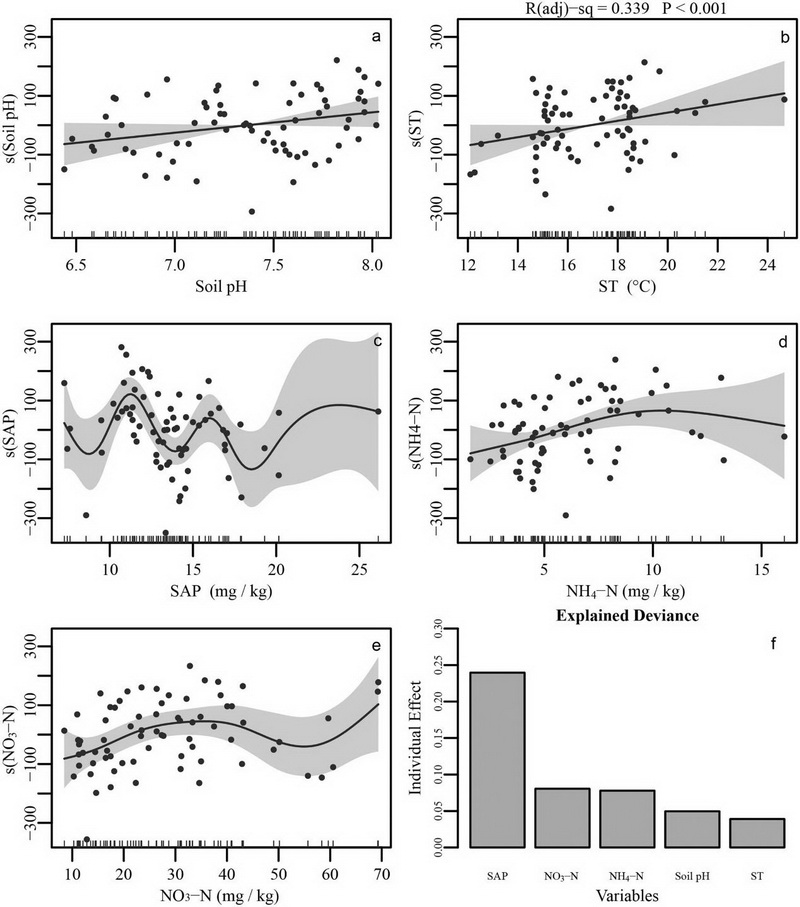 使用gam.hp分解土壤因素對(duì)植物群落系統(tǒng)發(fā)育多樣性的影響