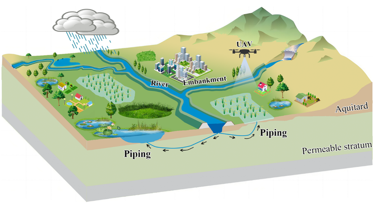 堤防是抵御洪水的關(guān)鍵屏障,但滲漏、管涌等險(xiǎn)情隱患常因地質(zhì)條件復(fù)雜、植被覆蓋或極端天氣難以及時(shí)發(fā)現(xiàn),導(dǎo)致潰堤風(fēng)險(xiǎn)。傳統(tǒng)人工巡檢效率低且存在風(fēng)險(xiǎn),現(xiàn)有地球物理探測(cè)技術(shù)成本高、實(shí)時(shí)性較差。近年來(lái),無(wú)人機(jī)與人工智能技術(shù)的結(jié)合為堤防智能化巡檢開辟了新路徑,但對(duì)復(fù)雜自然場(chǎng)景下的適用性仍面臨挑戰(zhàn)。