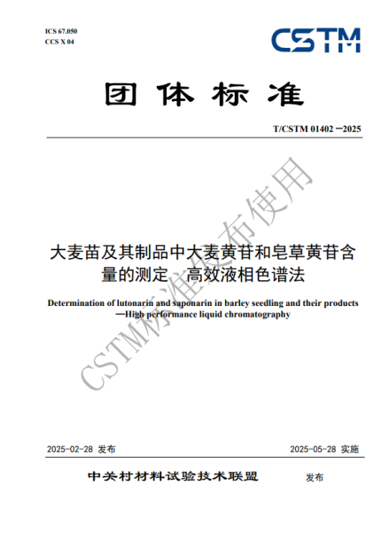 2025年2月28日,由中國科學(xué)院西北高原生物研究所、青海省藥品檢驗檢測院、西寧海關(guān)技術(shù)中心和青海金麥杞生物科技有限公司聯(lián)合完成的中國材料與試驗團體標(biāo)準(zhǔn)委員會(CSTM)團體標(biāo)準(zhǔn)《大麥苗及其制品中大麥黃苷和皂草黃苷含量的測定 高效液相色譜法》(T/CSTM 01402—2025)正式發(fā)布。該標(biāo)準(zhǔn)為基于大麥苗(青稞苗)的大健康產(chǎn)品的質(zhì)量控制和技術(shù)創(chuàng)新提供了科學(xué)依據(jù)和規(guī)范化指導(dǎo)。標(biāo)準(zhǔn)詳細規(guī)定了使用高效液相色譜法測定大麥苗及其制品中活性成分大麥黃苷和皂草黃苷含量的方法,包括樣品的前處理、色譜條件的優(yōu)化、校準(zhǔn)曲線的繪制、數(shù)據(jù)的處理、以及測量不確定度的評估等關(guān)鍵環(huán)節(jié)。標(biāo)準(zhǔn)還特別強調(diào)了在實際檢測中應(yīng)根據(jù)樣品的特性進行個性化的調(diào)整和優(yōu)化,以確保檢測結(jié)果的準(zhǔn)確性和可靠性。此外,標(biāo)準(zhǔn)還提供了詳細的試驗報告模板,包括識別樣品、實驗室和試驗日期所需的全部信息,以及引用標(biāo)準(zhǔn)、結(jié)果表示和異?,F(xiàn)象記錄等內(nèi)容,為檢測結(jié)果的完整性和可追溯性提供了有力保障。