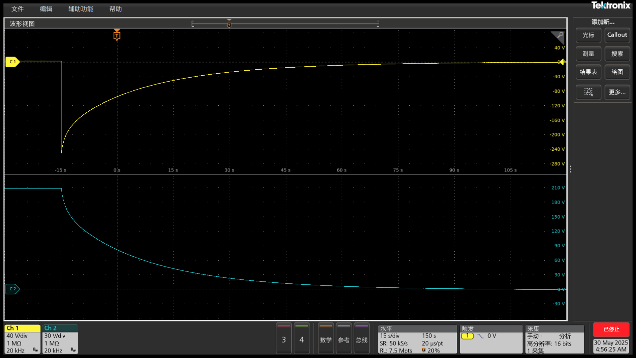 圖2 :額定電流210A勵(lì)磁時(shí)電流和電壓曲線