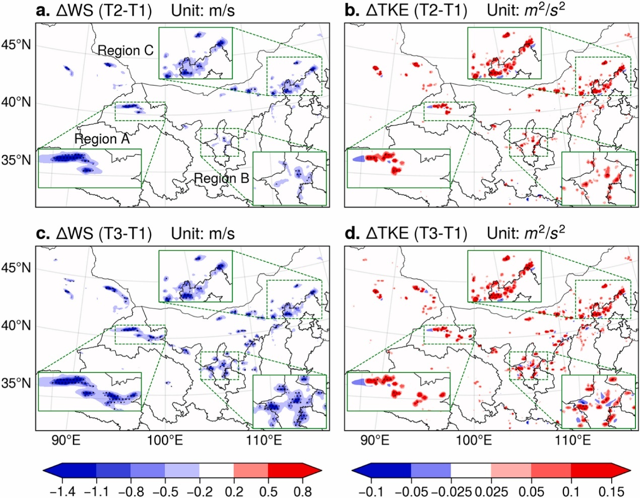 相關研究成果以Potential impacts of large-scale wind farms on regional climate and vegetation in northern China: Insights from modeling studies為題,發(fā)表于國際權威期刊Energy。該研究得到內蒙古自治區(qū)“揭榜掛帥”項目、國家自然科學基金等的資助。