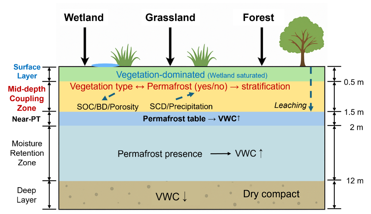 該研究系統(tǒng)提出了邊緣多年凍土區(qū)土壤水分的“垂向分層控制體系”概念框架,為完善多年凍土水文過(guò)程認(rèn)識(shí)提供了關(guān)鍵實(shí)地依據(jù)。