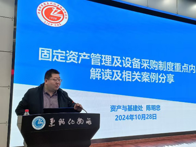 資產(chǎn)與基建處處長陳建介紹了新修訂的資產(chǎn)采購與管理相關(guān)制度,陳明忠作了題為“固定資產(chǎn)管理及設(shè)備采購制度重點內(nèi)容解讀及相關(guān)案例分享”的報告,分析了研究所資產(chǎn)管理形勢,結(jié)合案例解讀了新修訂的固定資產(chǎn)采購制度。費守祥作了題為“料與低值易耗品采購管理制度修訂重點內(nèi)容解讀以及案例講解”的報告,介紹了材料與低值易耗品采購、稀貴金屬和貴重試劑、易制毒化學(xué)品和易制爆化學(xué)品管理,分享了相關(guān)案例。