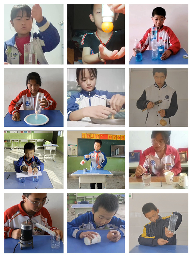 前期,研究所面向幫扶村師生組織了“向星·向未來”科學(xué)實(shí)驗(yàn)短視頻大賽,學(xué)校積極響應(yīng),學(xué)生踴躍參加,共提交46件作品,最終評選出30個(gè)優(yōu)秀獎(jiǎng)、10個(gè)參與獎(jiǎng)以及13名優(yōu)秀指導(dǎo)老師獎(jiǎng)。作品展現(xiàn)形式豐富多彩,涵蓋了摩擦學(xué)、慣性定律、大氣壓力、熱脹冷縮等生活中常見的原理及現(xiàn)象。