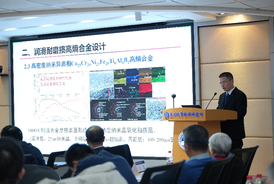 蘭州化物所所長、潤滑材料重點實驗室主任周峰研究員作了2024年度實驗室工作報告。詳細介紹了2024年實驗室重組和黨建創(chuàng)新文化建設(shè)情況,匯報了實驗室在科研成果、平臺建設(shè)、人才引進與培養(yǎng)、產(chǎn)業(yè)化等方面取得的成績和存在的問題與思考,提出了2025年工作重點及目標。隨后,程軍研究員和張耀明研究員分別作了題為“潤滑耐磨損高熵合金的設(shè)計研究”和“形狀記憶聚合物創(chuàng)制及其智能響應(yīng)應(yīng)用”的學術(shù)報告。