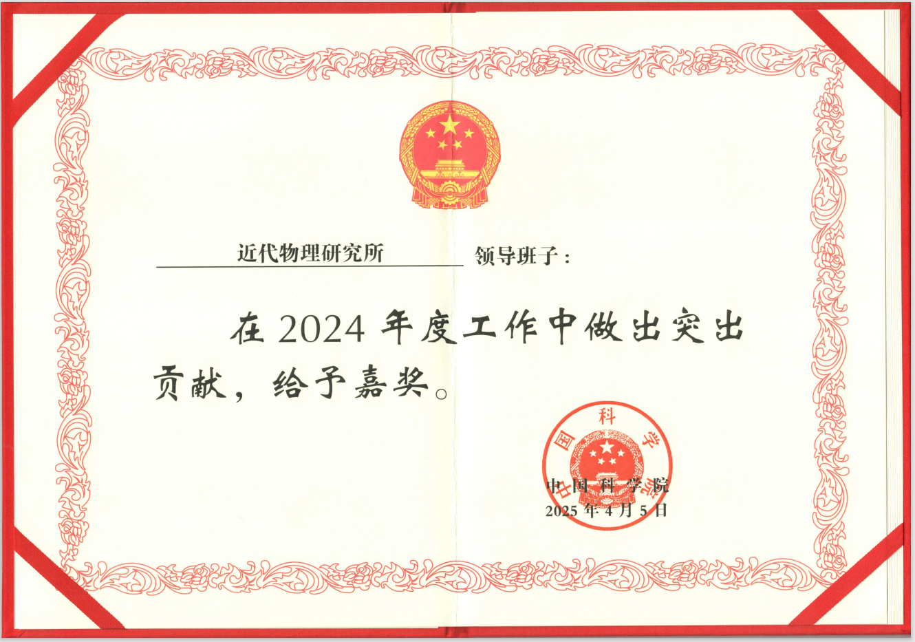 近日,中國科學(xué)院印發(fā)了2024年度領(lǐng)導(dǎo)班子和領(lǐng)導(dǎo)人員考核優(yōu)秀予以獎勵的決定。中國科學(xué)院近代物理研究所領(lǐng)導(dǎo)班子、所長孫志宇、副所長何源榮獲2024年度中國科學(xué)院嘉獎。
