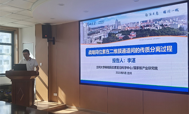 李湛作了題為“戰(zhàn)略同位素在二維膜通道間的傳質分離過程”的報告。介紹了同位素分離的重要性、應用需求和分離現(xiàn)狀,創(chuàng)新性地發(fā)展了系列綠色環(huán)保、低能耗、可連續(xù)分離的膜分離技術,他們通過在二維納米片表面及二維層狀膜的層間原位限域引入活性位點,利用活性位點的同位素效應,結合二維層狀膜的超長傳質通道,利用擴散速率的差異進行高效氫同位素分離、鋰離子與鋰同位素分離、醫(yī)用同位素的高效分離以及鹵水中鈾資源的高效分離,闡明了復雜體系中目標離子、分子、同位素在二維層間多功能通道的識別與篩分機制。