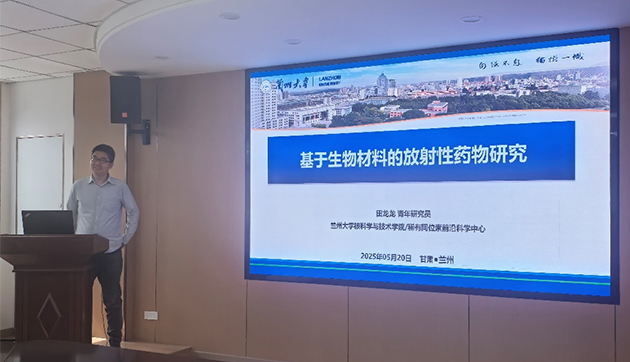 田龍龍作了題為“基于生物材料的放射性藥物研究”的報告。介紹了醫(yī)用核素的國內外發(fā)展現(xiàn)狀以及我國醫(yī)用核素治療藥物的發(fā)展歷程及相關政策。重點分享了其團隊在核素藥物研究方面的系列成果,特別是在利用生物材料增強核藥治療效果方面的最新研究進展,他們通過以細菌合成的聚合物微球材料緩釋病原相關分子、天然松花粉作為載體緩釋多糖、生物來源的囊泡激活天然免疫等策略構建靶向核素治療藥物、近距離放療的核素治療藥物,最終實現(xiàn)低劑量、強效的核素-免疫聯(lián)合治療。