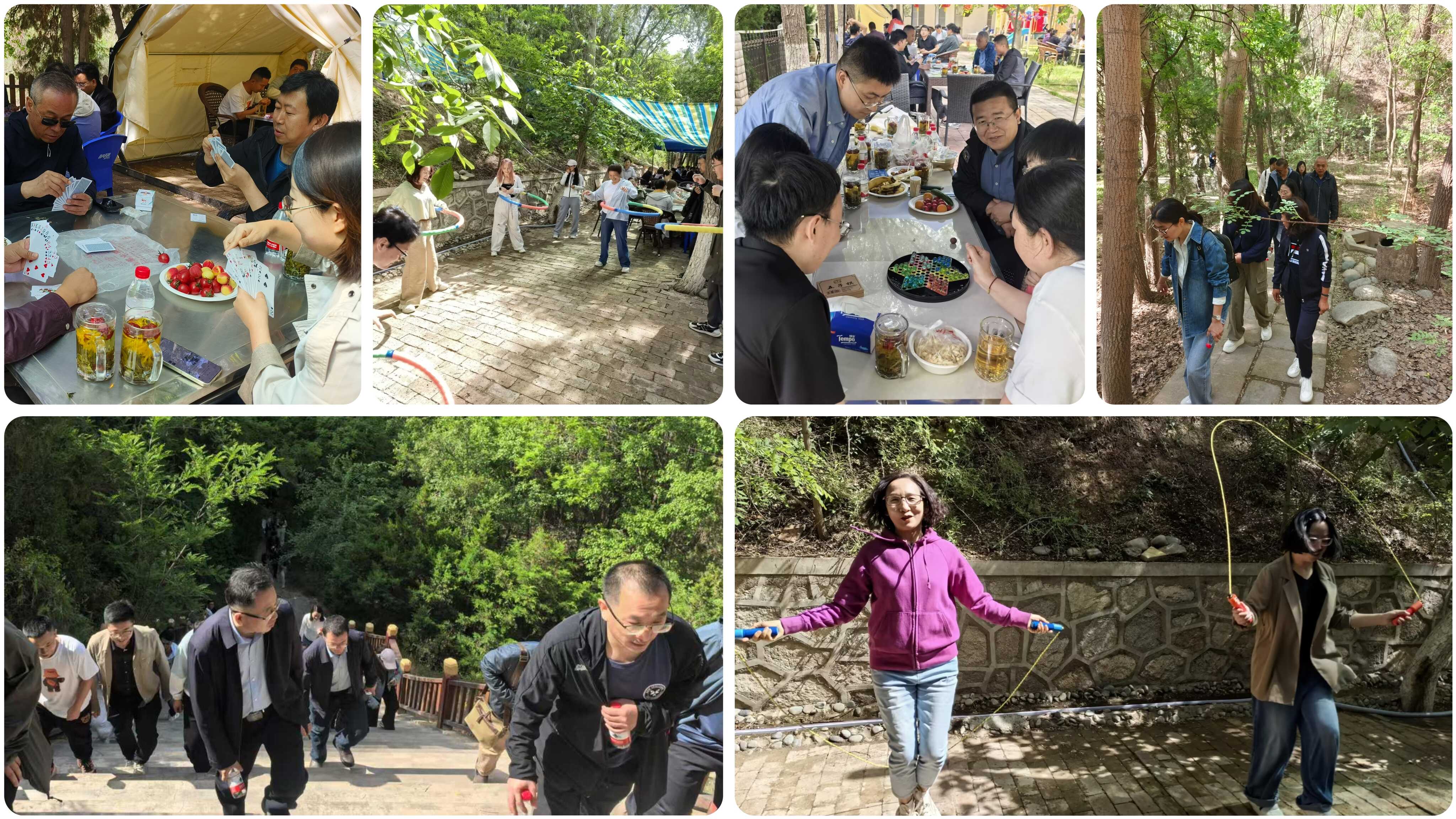 活動中,大家一邊欣賞美麗的春日景色,一邊享受著戶外運動帶來的樂趣。經(jīng)過半個多小時的徒步行進,陸續(xù)到達登山活動的終點。各分會組織開展了跳繩、棋牌等多種形式的休閑娛樂活動。