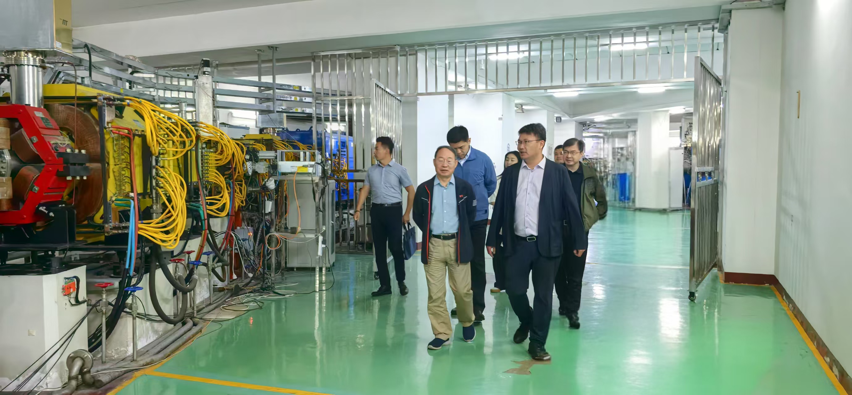隨后,胡正國陪同聶生奎一行實地參觀了“國際反質子與離子大科學研究基地”的依托平臺----蘭州重離子加速器國家實驗室(HIRFL)。通過近距離觀摩,調研組詳細了解了大科學裝置在核物理、重離子科學及交叉學科研究中的所取得的科技成果和技術創(chuàng)新。聶生奎高度評價HIRFL作為我國核物理與重離子科學領域的重要研究平臺,HIRFL長期致力于科技創(chuàng)新與學術交流,成為持續(xù)有效開展國際科技交流與合作的典范。