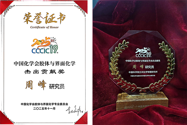 蘭州化物所周峰研究員榮獲中國化學(xué)會膠體與界面化學(xué)杰出貢獻(xiàn)獎