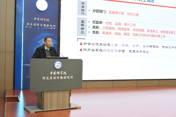 陳世龍所長(zhǎng)代表所領(lǐng)導(dǎo)班子作了題為“扎根青藏高原 聚焦高原生物 保障生態(tài)安全”的2025年度工作總結(jié)和述職報(bào)告。報(bào)告詳細(xì)闡述了“十四五”完成情況,就深入學(xué)習(xí)貫徹黨的二十屆四中全會(huì)精神,貫徹落實(shí)2025年度院工作會(huì)議精神,聚焦院黨委重大決策部署,研究所重大科研項(xiàng)目進(jìn)展、高水平科研成果產(chǎn)出等內(nèi)容進(jìn)行匯報(bào),并對(duì)2026年重點(diǎn)工作進(jìn)行部署。