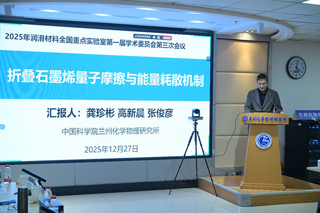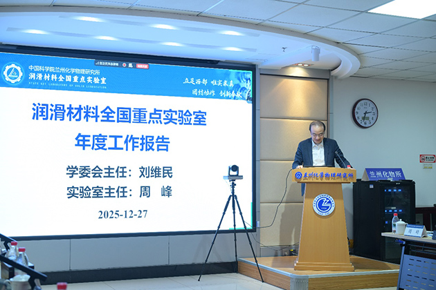 蘭州化物所所長、實(shí)驗(yàn)室主任周峰研究員作了2025年度工作報告,全面梳理科研成果、平臺建設(shè)、人才引育、產(chǎn)業(yè)化等領(lǐng)域的成效,深入剖析現(xiàn)存問題與改進(jìn)思路,明確2026年工作重點(diǎn)與核心發(fā)展目標(biāo)。蔡美榮研究員、鮑路瑤副研究員、龔珍彬副研究員分別作了“固/介質(zhì)復(fù)合潤滑材料的空間環(huán)境效應(yīng)及在軌驗(yàn)證研究”“潤滑油材料的高通量計算和人工智能設(shè)計”“折疊石墨烯量子摩擦與能量耗散機(jī)制”的學(xué)術(shù)報告。
