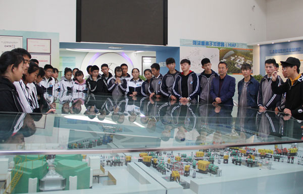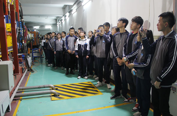 在中科院近代物理研究所,同學們參觀了蘭州重離子加速器國家實驗室展廳,通過科研人員的講解了解到蘭州重離子加速器是我國規(guī)模最大、加速離子種類最多,能量最高的重離子研究裝置,主要技術(shù)指標達到國際先進水平,先后取得了以新核素合成、核質(zhì)量精確測量、重離子治癌研究等為代表的一批重要科研成果,使我國重離子物理及交叉學科研究進入國際先進行列。在科研人員的帶領(lǐng)下,同學們有幸親自走進重離子加速器國家實驗室,近距離對話科學大裝置,大家好奇的眼神,激動的心情,溢于言表。