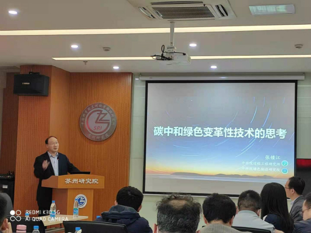 4月25日,中國科學院院士、中科院過程工程研究所張鎖江研究員應邀訪問中國科學院蘭州化學物理研究所蘇州研究院,并作了題為“碳中和綠色變革性技術(shù)的思考”的學術(shù)報告。