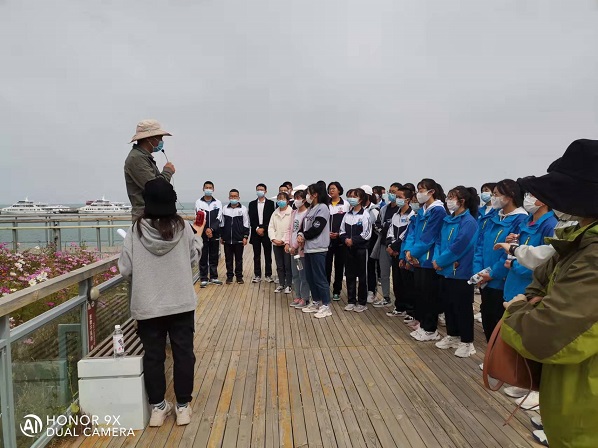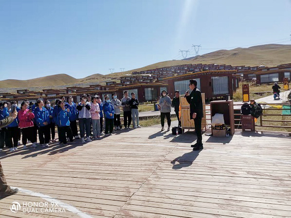 在為期兩天的行程中,同學(xué)們先后參觀了青海湖和海北原子城紀(jì)念館,在老師的指導(dǎo)下學(xué)習(xí)如何樹立自信心,增強(qiáng)合作意識,了解與青藏高原相關(guān)的地質(zhì)地理知識,感受兩彈一星老科學(xué)家們無私奉獻(xiàn)和創(chuàng)新報(bào)國的精神等。此外,大家還分組團(tuán)隊(duì)合作自己設(shè)計(jì)團(tuán)隊(duì)游戲,展示個人才藝,氣氛融洽而熱烈。尤其是在展示個人才藝環(huán)節(jié)還發(fā)生了一個有趣而暖心的小插曲,同學(xué)們的歌舞表演不僅吸引了周圍游客的關(guān)注,也引起了一位從四川九寨溝遠(yuǎn)道而來的藏族歌手的注意,這位歌手被同學(xué)們的表演所感染,用他特有的嗓音欣然為同學(xué)們演唱了他自己原創(chuàng)的歌曲,并鼓勵同學(xué)們努力學(xué)習(xí),成為對國家對社會有用的人才。