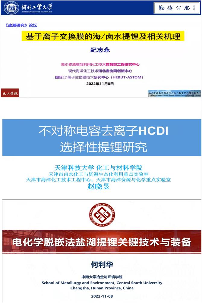 論壇圍繞“鹽湖鹵水提鋰”這一中心議題,進行了學術(shù)報告及廣泛交流。論壇包括3個邀請報告,邀請河北工業(yè)大學紀志永教授、天津科技大學趙曉昱副研究員、中南大學何利華副教授分別圍繞離子交換膜提鋰、不對稱電容去離子技術(shù)選擇性提鋰、電化學脫嵌法提鋰等主題作了深度報告與交流。