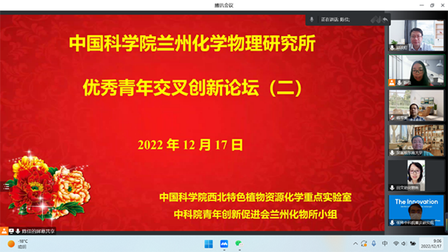 12月17日,中國科學院蘭州化學物理研究所中科院西北特色植物資源化學重點實驗室聯(lián)合中科院青年創(chuàng)新促進會蘭州化物所小組舉辦了優(yōu)秀青年交叉創(chuàng)新論壇(二)。本次論壇通過騰訊會議召開,相關(guān)領(lǐng)域科研人員和研究生參加了論壇。