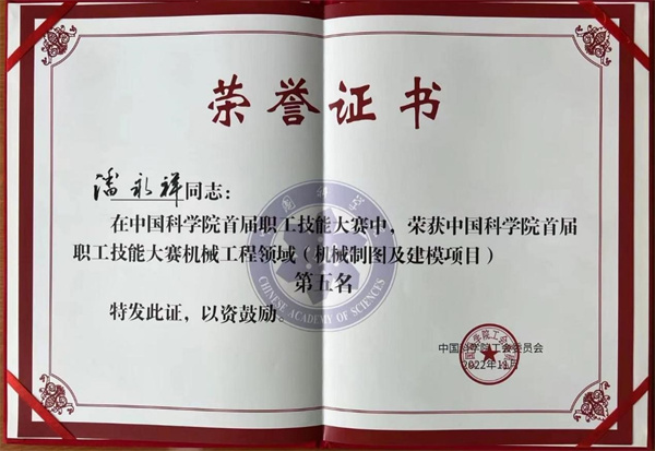 近代物理所通用技術(shù)中心機(jī)械準(zhǔn)直技術(shù)室共4名職工(含1名領(lǐng)隊(duì))參賽,其中陸海嬌同志參加了代表作展示比賽,榮獲第四名的優(yōu)異成績(jī)。潘永祥和楊振2名同志參加了線上的機(jī)械制圖和建模比賽,潘永祥榮獲第五名的優(yōu)異成績(jī)。