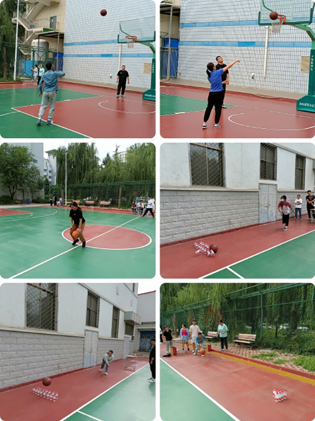師生籃球友誼賽分導(dǎo)師組和學(xué)生組,最終學(xué)生組以46比40的成績戰(zhàn)勝導(dǎo)師組?;@球趣味活動包括定點投籃、趣味“保齡球”、籃球蹦蹦跳和天旋神射手四個項目,根據(jù)規(guī)則分別獲得不同數(shù)量的印章,最終通過累計印張數(shù)評出不同等次的獎勵。