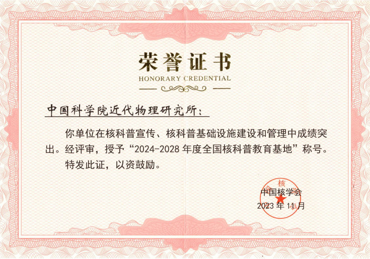 近日,在中國核學(xué)會(huì)組織開展的2024-2028年度“全國核科普教育基地”評(píng)選中,近代物理所被認(rèn)定為“2024-2028年度全國核科普教育基地”。