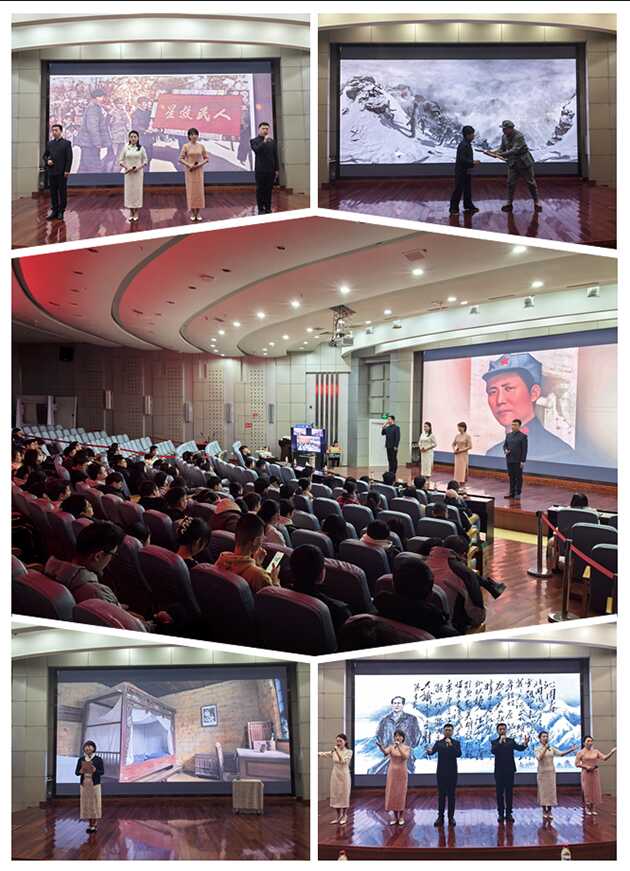 報告會邀請了甘肅高臺干部學(xué)院6名老師作了題為《品讀主席詩詞?汲取奮進(jìn)力量》的情景黨課,黨課以毛澤東詩詞為創(chuàng)作主線,綜合運(yùn)用背景講述、情景表演、詩詞誦讀、旁白解說等形式,結(jié)合歷史背景和感人革命故事,分為“道路的力量”“信仰的力量”“真情的力量”“人民的力量”四個篇章,用詩詞話黨史,生動再現(xiàn)中國共產(chǎn)黨領(lǐng)導(dǎo)全國各族人民救亡圖存和勵精圖治的價值取向與使命擔(dān)當(dāng),帶領(lǐng)在場研究生重溫崢嶸歲月,賡續(xù)中國共產(chǎn)黨人精神血脈。