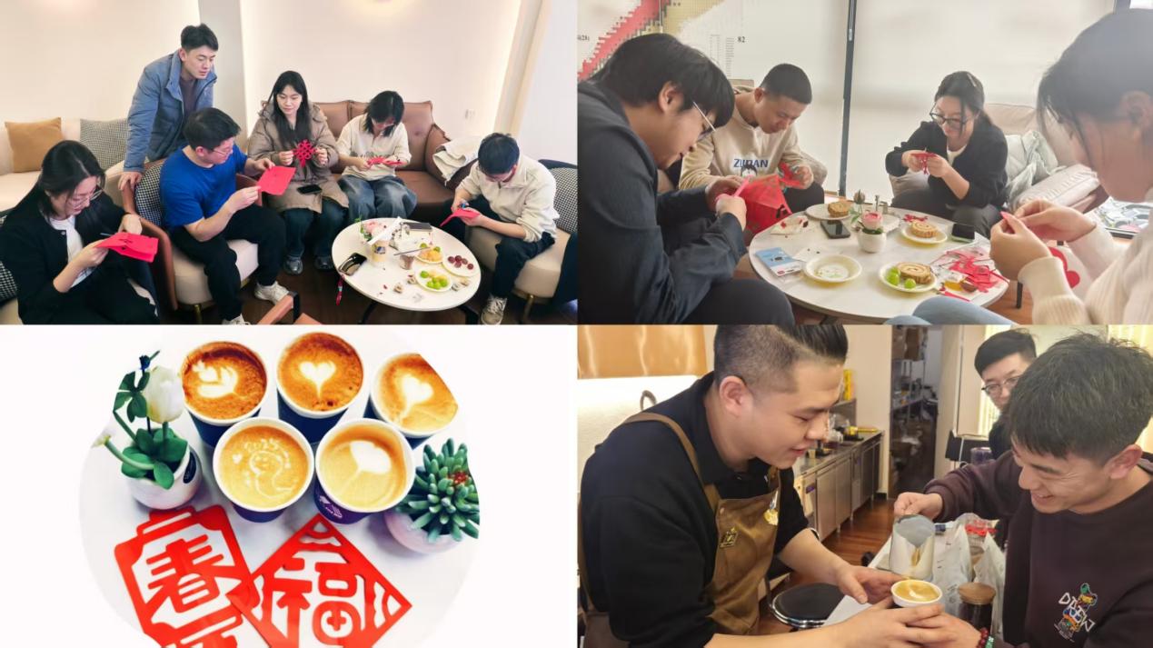 活動(dòng)現(xiàn)場(chǎng),同學(xué)們專注體驗(yàn)剪紙的魅力、興奮展示各自的剪紙成果?,F(xiàn)場(chǎng)洋溢著濃厚的節(jié)日氛圍,每一片窗花、每一個(gè)“?!弊?,每一份新年寄語(yǔ)都承載著大家對(duì)新一年的美好期盼。隨后,大家在咖啡師的現(xiàn)場(chǎng)教學(xué)下投入到咖啡拉花制作,感受咖啡制作的樂(lè)趣。