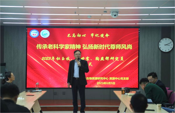 莫道桑榆晚,為霞尚滿天。6月5日下午,中國科學(xué)院西北高原生物研究所人事教育處聯(lián)合特色生物資源研究中心(以下簡稱資源中心)和資源中心黨支部,舉辦以“傳承老科學(xué)家精神 弘揚新時代尊師風(fēng)尚”為主題的教育活動暨職工榮休儀式。所長陳世龍,黨委書記、副所長張景光,副所長魏立新、楊其恩,管理部門負責(zé)人,退休研究員杜玉枝、馬世震和陶燕鐸及資源中心在職職工和研究生50余人參加會議。會議由人事教育處副處長楊紅霞和資源中心主任周國英主持。