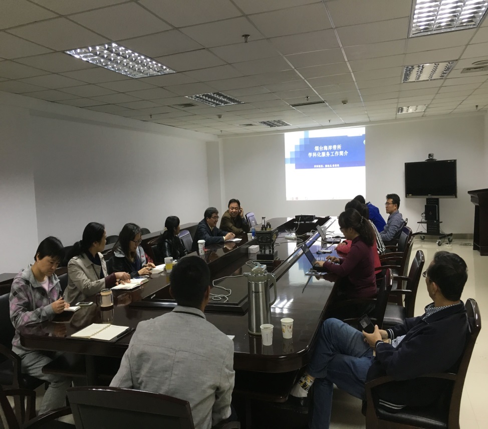 駱永明強(qiáng)調(diào)了文獻(xiàn)情報(bào)信息在科研過(guò)程中的重要性,并結(jié)合自身科研工作和海岸帶研究所的發(fā)展進(jìn)行了闡述。他肯定了由蘭州文獻(xiàn)中心學(xué)科館員與煙臺(tái)海岸帶所圖書(shū)館員共同完成的《煙臺(tái)海岸帶所近五年發(fā)文及對(duì)比機(jī)構(gòu)分析》在研究所“十二五”評(píng)估匯報(bào)中發(fā)揮了重要支撐作用,并對(duì)蘭州文獻(xiàn)中心多年來(lái)對(duì)煙臺(tái)海岸帶研究所的文獻(xiàn)情報(bào)工作支撐表示感謝。在談及研究所“十三五”期間對(duì)文獻(xiàn)情報(bào)工作的需求時(shí),駱永明提出結(jié)合研究所開(kāi)展的國(guó)際研究計(jì)劃和即將召開(kāi)的學(xué)術(shù)會(huì)議開(kāi)展學(xué)科情報(bào)服務(wù)的合作研究,并對(duì)知識(shí)產(chǎn)權(quán)分析、科研團(tuán)隊(duì)信息環(huán)境建設(shè)以及面向院重點(diǎn)實(shí)驗(yàn)室的評(píng)價(jià)等工作提出了服務(wù)需求。他最后建議蘭州文獻(xiàn)中心要結(jié)合多年來(lái)的數(shù)據(jù)庫(kù)分析工作,開(kāi)展對(duì)中文學(xué)術(shù)論文的影響力研究,探索公證客觀(guān)的評(píng)價(jià)方法。